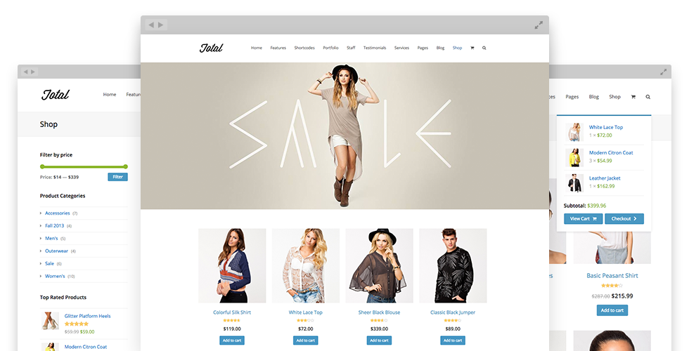 Easily create a store online and sell your products with Total and WooCommerce.
