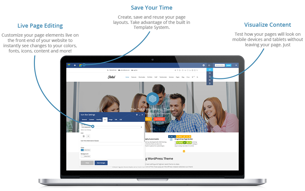 Total comes with an easy drag and drop editor via the Visual Composer making it easy to setup new sites in no time!